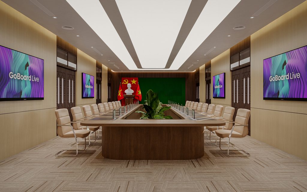 - Các Sở, Ban, Ngành và đơn vị giáo dục: triển khai hệ thống phòng họp hiện đại kết hợp màn hình tương tác và camera tự động.