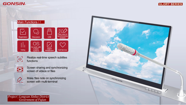 Hệ thống hội thảo không cần giấy tờ – Màn hình Nâng Hạ Gonsin là một hệ thống hội nghị tích hợp đa chức năng, mang đến trải nghiệm họp hành chuyên nghiệp và hiệu quả. Màn hình được trang bị nhiều tính năng tiên tiến, đáp ứng nhu cầu đa dạng của người dùng.